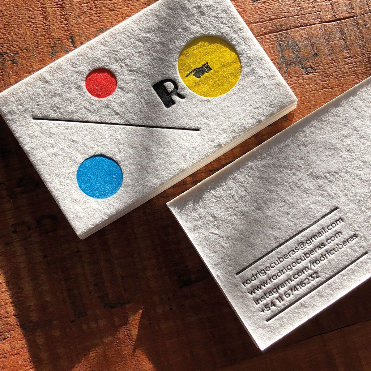 Tarjetas personales impresas en Letterpress sobre papel Cordenons Wild Natural White de 450gr.