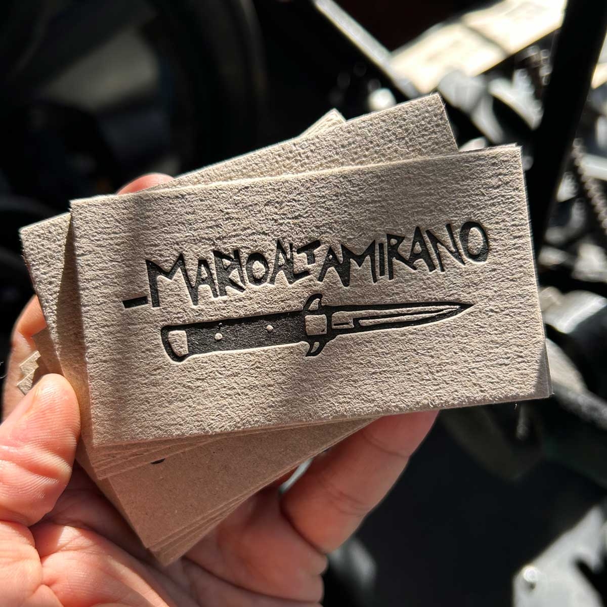 Tarjetas personales impresas en Letterpress sobre carton gris de 1,5mm.